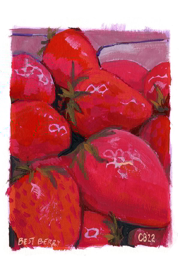 These 4 inch x 6 inch giclée prints of my traditional gouache illustrations will make an incredible addition to any room. Choose from a variety of strawberry, orange, persimmon, clementine, and cherry paintings in various styles, all painted traditionally with opaque watercolor. The square tangerines print is 4x4 inches.
