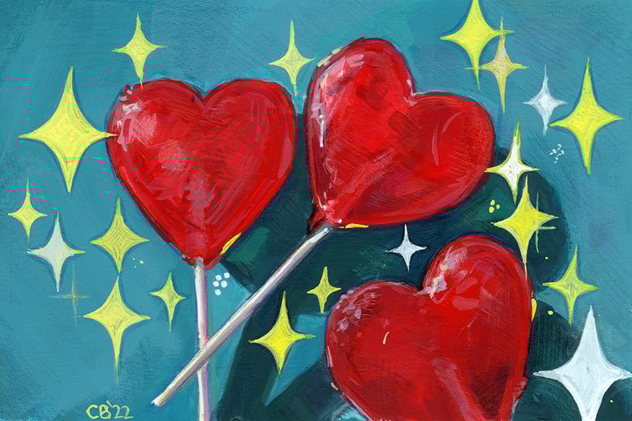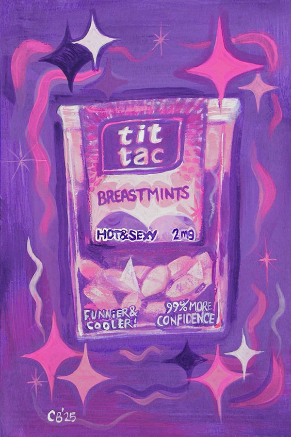 These 4 inch x 6 inch giclée prints of my traditional gouache illustrations will make an incredible addition to any room. Choose from the cheeky "Breastmints," the dreamy "Cloudy," the energetic "Trans Manitizer," the romantic "Valentine 4 Valentine," and the aesthetic "Heart Lollipops. Newly added works include Blue Butterfly, Ocean Rocks, and a series of three floral illustrations done in tempera paint stick.